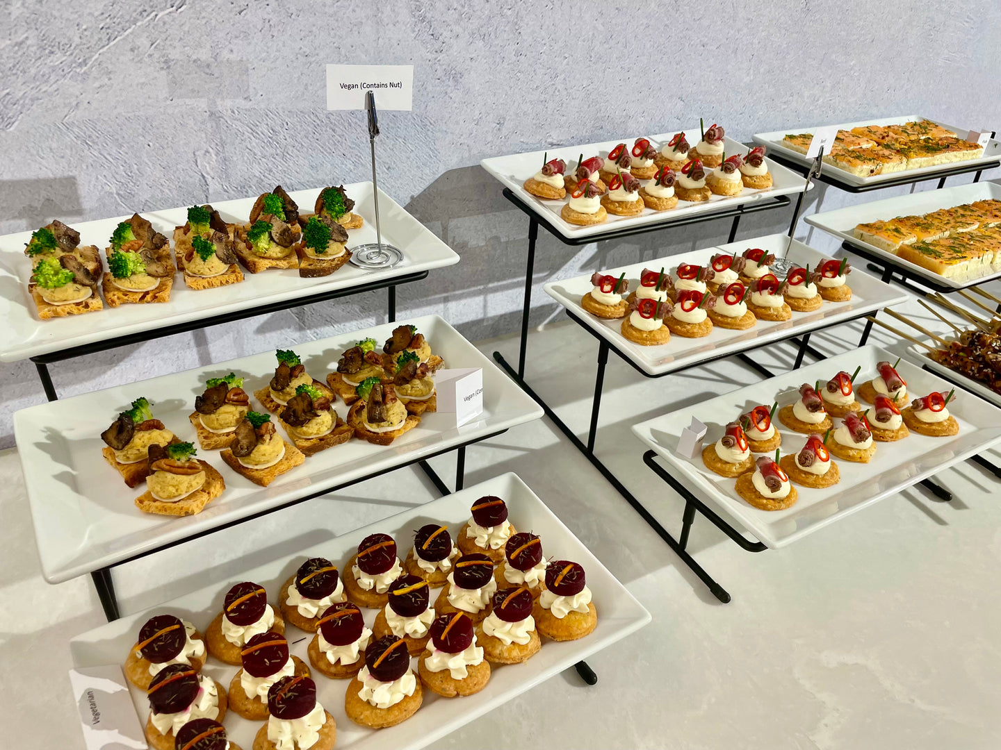 Canapés are delivered in insulated chill pack cooled conditions and have a holding time in 21°C degree conditions of 6 hours while fully sealed. While the Company recommends storing in a cool area, out of sunlight and away from sources of heat until service, the Company cannot accept and liability or responsibility for products once the order has been delivered and signed for.